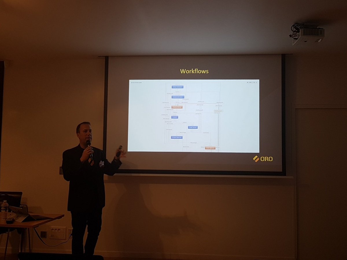 Yoav a abordé une des fonctionnalités majeures d’OroCommerce , la gestion des workflows qui permet aux e-commerçants B2B de personnaliser le tunnel d’achat de leurs clients et de renforcer leurs processus internes de validation de commandes.